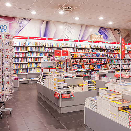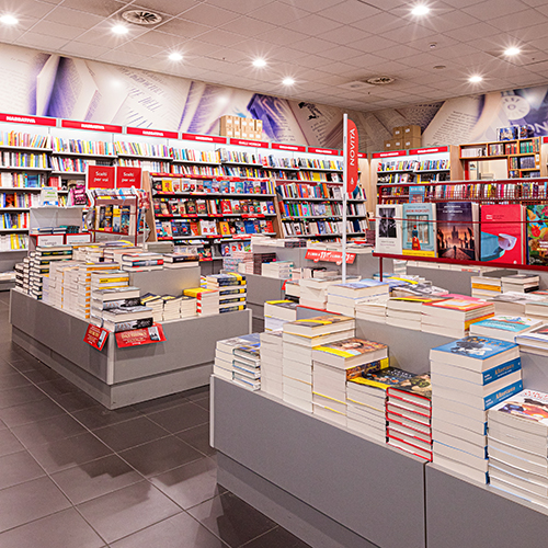Ampi spazi e scelta offre anche Mondadori, circa 350 mq di fornita libreria per il tempo libero, l'informazione, i regali. Tutte le ultime novità librarie, un assortimento all'interno di 25.000 titoli.