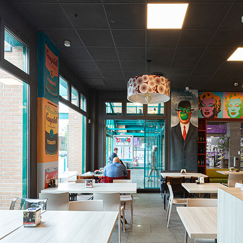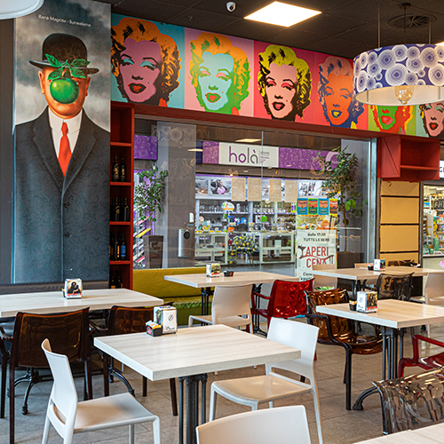 Magritte offre all'interno di Euro Torri la cucina tipica locale in un vero e proprio ristorante/pizzeria con servizio al tavolo.